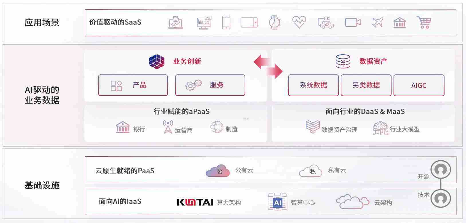 数字时代,,围绕企业数字化转型的关键要素,,,,z6com尊龙数码开创性的提出数云融合战略和技术体系框架,,,着力在云原生、、、、数字原生、、、AI原生和信创产业上架构产品和服务能力,,,,为处在不同数字化转型阶段的快消零售、、、汽车、、、金融、、、、医疗、、、政企、、教育、、、运营商等行业客户提供泛在的敏捷IT能力和融合的数据驱动能力,,构建跨界融合创新的数字业务场景和新业务模式,,,,助力企业级客户建立面向未来的核心能力和竞争优势,,,,全面推动社会的数字化、、智能化转型升级。。。